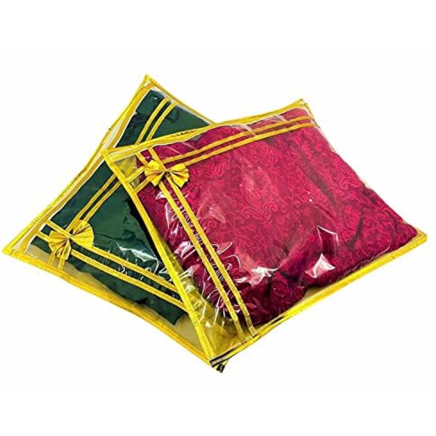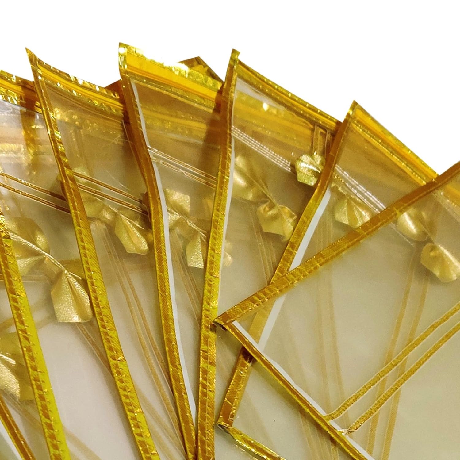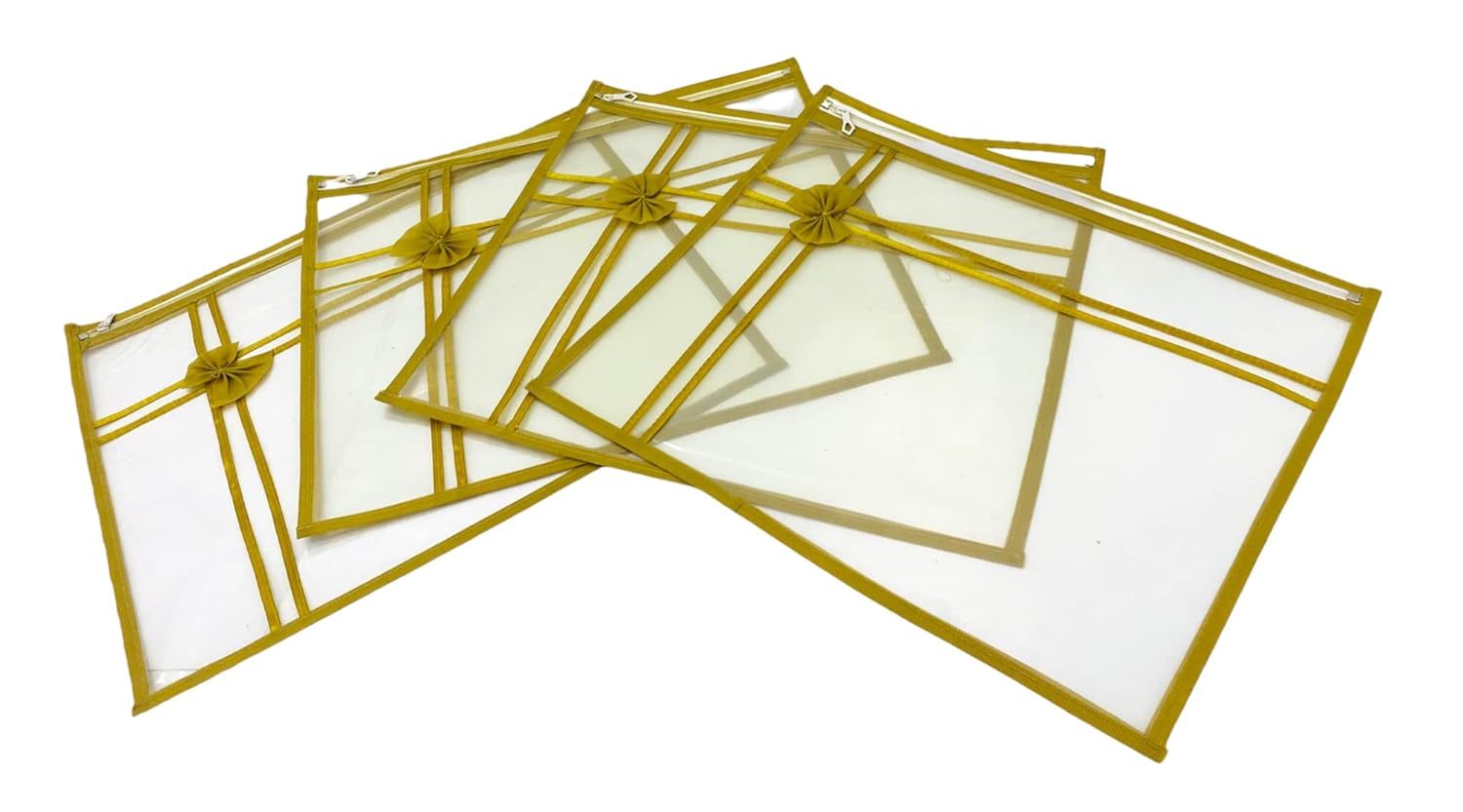 Whether you’re organizing your daily wear sarees or saving a special outfit for a memorable occasion, these transparent saree covers are the ideal solution. The golden ribbon highlights elevate the appearance, making the covers not just practical but also aesthetically pleasing. They are lightweight, portable, and designed to easily fit into closets, drawers, or suitcases. The zip closure ensures effortless usability while keeping your sarees safe and secure.