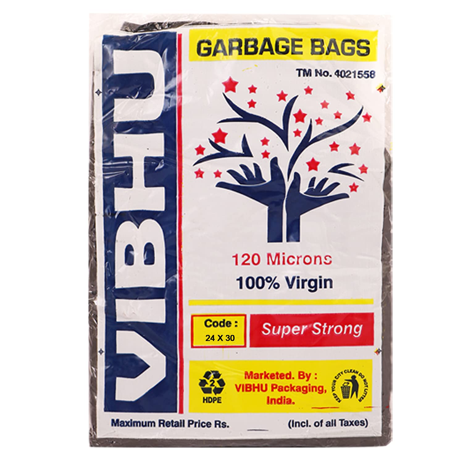 VIBHU Plastic Dustbin Bags | (Black) | 24×30 inch | – Pack of 50 | (Large)